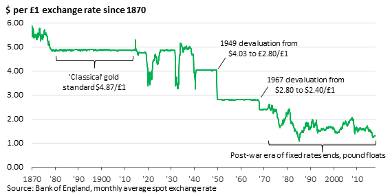 布雷顿森林体系在70年代结束了自己的使命,当美元不在和黄金挂钩宣告着自由浮动汇率时代的来临。这一时期英镑出现了连续下跌之后反弹,再下跌的局面。1990年之后英国曾经短暂的加入欧洲汇率机制,但是两年后英国就被排除出了这个机制。也是在1992年发生了索罗斯狙击英镑的事件,英镑再度暴跌。