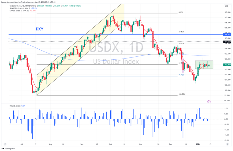 - 中国工业生产、固定资产投资、零售销售、房地产销售(1月17日 13:00AEDT) – 市场预计这些数据点分别为4.5%、2.9%、8%和-9.5%。当然,市场将密切关注房地产销售数据,寻找进一步证据表明销售正在触底。