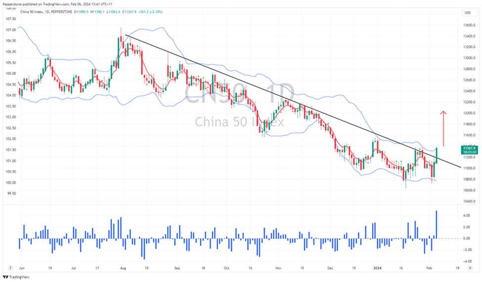 从战术上说,我看好做多CN50/做空US2000交易 – 这种交易是有效的,而且两边都是以美元计价。