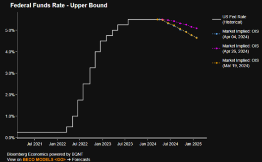 当然,这种温和的反应预计会导致股市和国债双双上涨,而美元则走软。然而,即使数据强于预期,股市的任何重大下跌也应该相对有限,因为就业市场吃紧将继续支撑支出,从而支撑盈利增长,同时还考虑到“美联储看跌期权”联邦基金利率的下一步举措仍可能在今年某个时候走低。然而,降息的时间仍然不确定,尽管第三季度的降息似乎是目前最合理的情况。