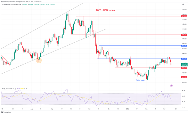 对于美元,眼前的考验则是3月14日20:30公布的物价数据。若核心CPI月率低于0.3%,则会让3月份加息25个基点的可能性回升。相反,高于0.5%的环比增速会为再次加息 50 个基点打开大门。通胀的结果越高,美元的涨幅和股市的回落显然越大。如果通胀出其不意的走低,我们可能会看到风险资产的大幅上涨,并且金融股持续上涨——市场更加相信美联储即将暂停。