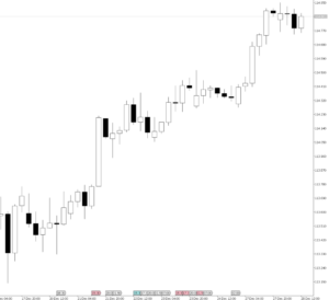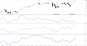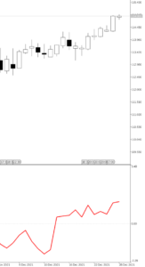以下图美元兑日元的日图所示,最新的ROC指标为1.31,报价是114.891。这意味着相对于12天前的收盘价,目前美元兑日元上涨了1.31%,上升的幅度是比较小的。