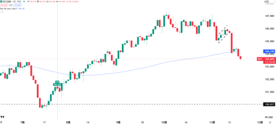 然而,事情并没有那么简单。在G10外汇的其他方面,美元相对于一篮子货币经历了一年来最糟糕的一天。美元指数 (DXY) 跌破 100 日移动均线上方,同时也运行到了重要心理关口 104 下方。