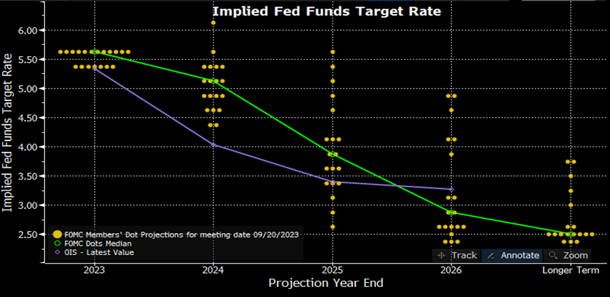 然而,重要的是要认识到,虽然定价不会进一步收紧,但货币市场确实预计从明年年中开始美联储将大幅宽松,到明年12月将降息约 100 个基点。