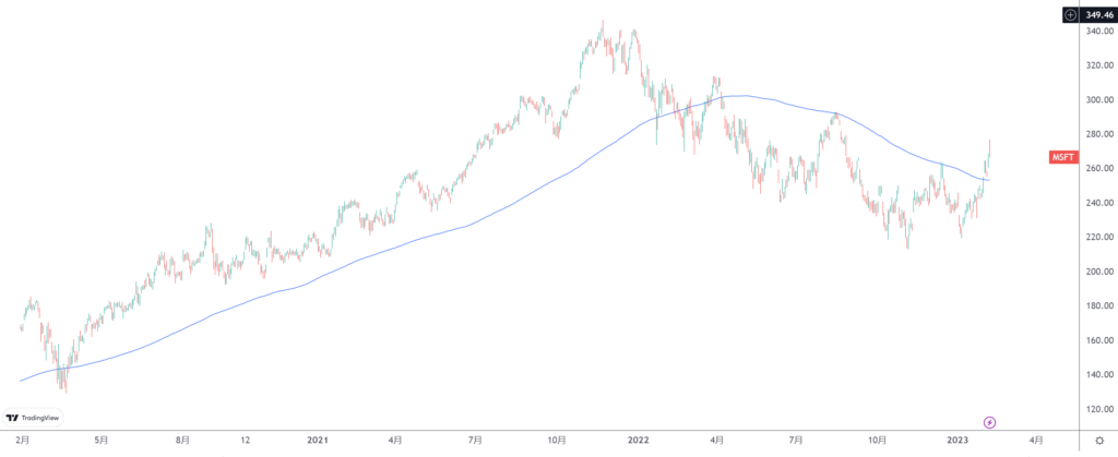 微软股票突破了200日均线,在上次突破这一均线,不幸发生再次回调下跌。但在历史走势图上,更多的时候,突破了200日均线会迎来较长时间的上涨行情。所以未来可以重点关注200周期均线附近,也就是252美元的回踩情况。