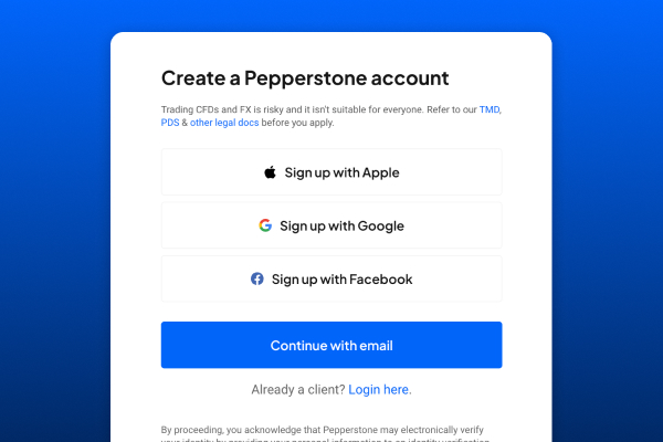 - 新客户*:需开立一个 MT5 账户,并完成身份验证(KYC)。
