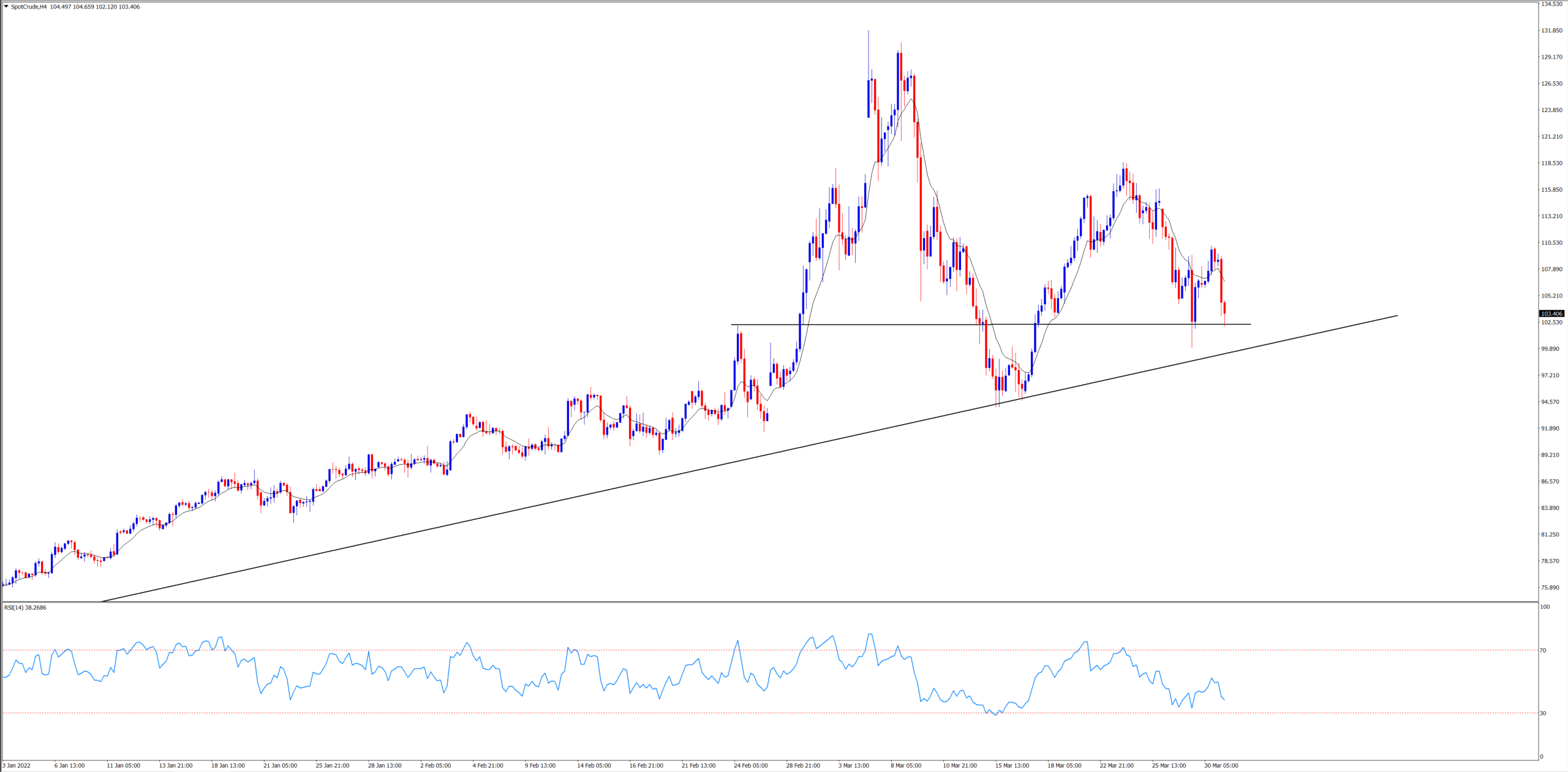 原油今天日内的急跌显然是对消息面的反映,短线关注102.30以及趋势线提供的支撑。但美国的一次性增量供应不足以改变原油市场持续已久的结构性问题。未来油价的走势很大程度仍然受到俄乌局势的影响。