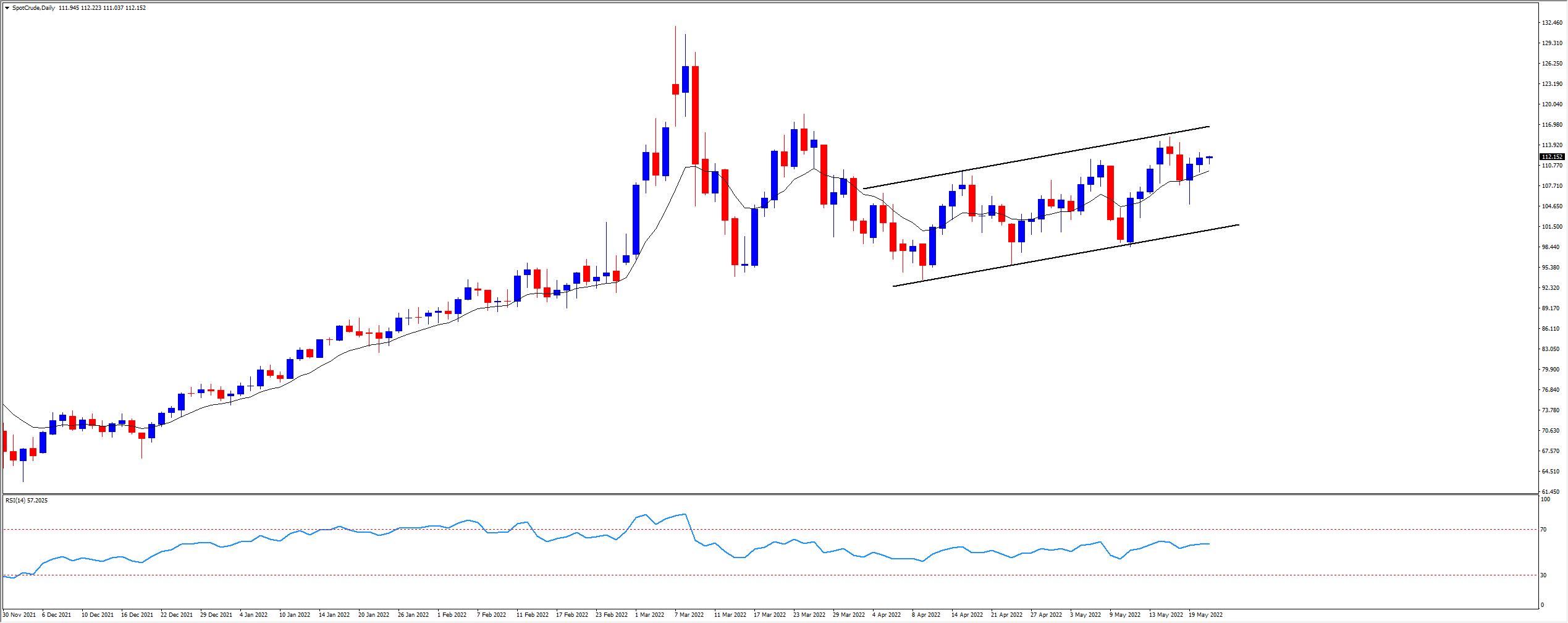 WTI原油上周小幅上涨至111.96,多空博弈仍然难分胜负,预计本周延续震荡上行。欧盟对俄罗斯的原油禁令打压供应。摆脱对俄罗斯的能源依赖以及其他产油国的增产在短时间内都难以实现。而悲观的经济前景又在不断冲击需求。中国生产制造业的持续恢复将会提振多头信心。