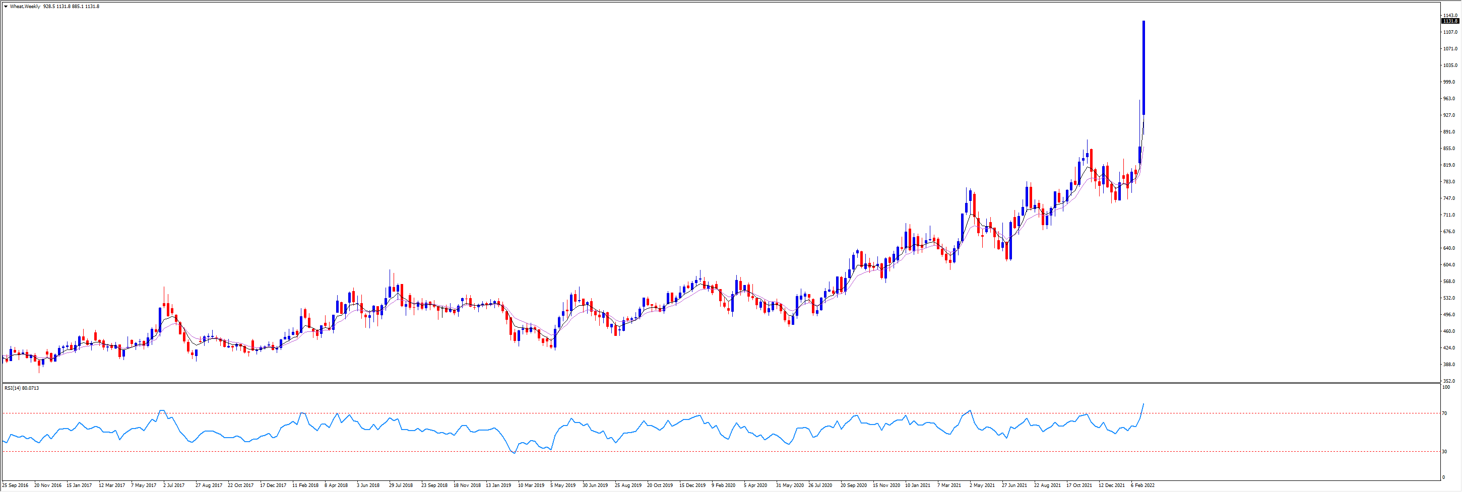 仅上周一周的走势来看,欧洲天然气期货累计上涨106%,煤炭期货+66%,小麦+30%,原油+25%,钯金+21%,镍+20%, 玉米+14%,铜+11%,相比之下黄金4%的周线涨幅几乎可以忽略不计。